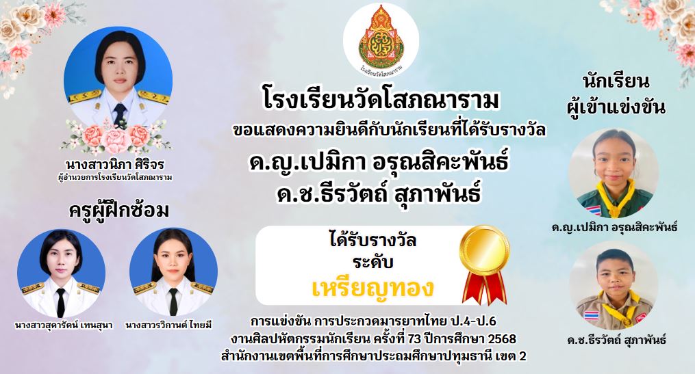 ชื่อผลงาน : ครูผู้ฝึกซ้อม การแข่งขัน การประกวดมารยาทไทย ป.4-ป.6 งานศิลปหัตกรรมนักเรียน ครั้งที่ 73 ปีการศึกษา 2568 สำนักงานเขตพื้นที่การศึกษาประถมศึกษาปทุมธานี เขต 2